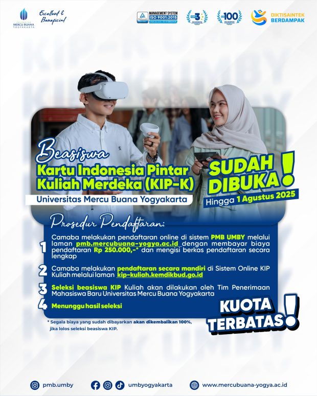 Daftar sekarang dan raih kesempatan kuliah GRATIS melalui Beasiswa KIP (Kartu Indonesia Pintar) Kuliah!